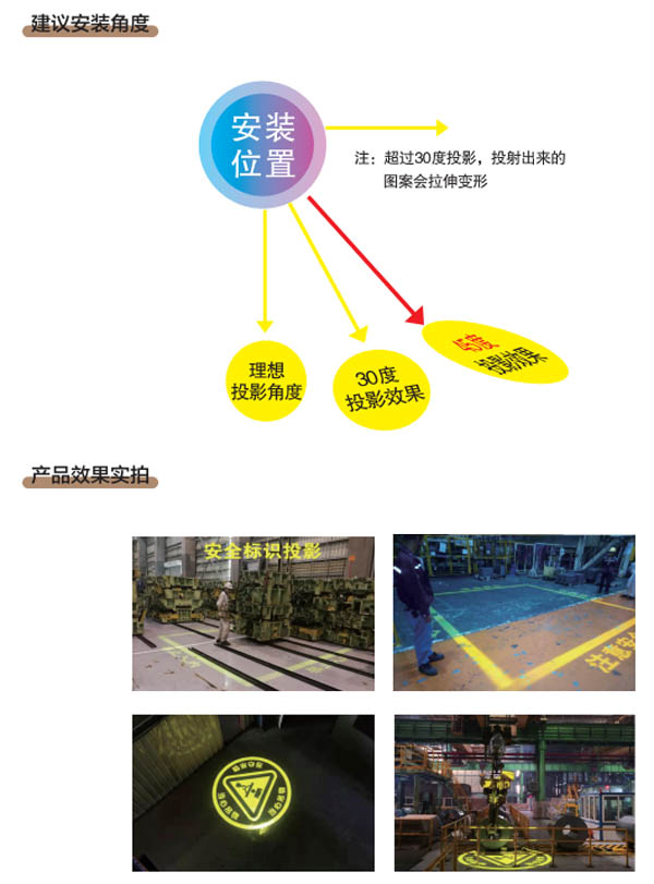 ABTY系列工业安全警示仪我公司自主研发,产品具有智能化,信息化等科技技术。是针对工业特殊环境和使用条件而单独设计的,产品结构强度高、耐高温、防水防尘、抗震、防掉落等特点。采用进口光源,使用寿命长、投影距离远等优点。可自行定义警示区域大小和形状、警示内容(如:“注意安全”、“危险区域”)等。广泛用于冶金、有色、化工、煤矿、建筑等行业,是现代厂矿企业安全生产的重要辅助产品,为您的安全生产保驾护航。